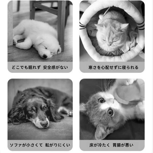 1.くぼみデザインがペットの身体をしっかり包み込み、抱きしめられているような感触を模倣し、不安を和らげ、休息の質を向上させます。
