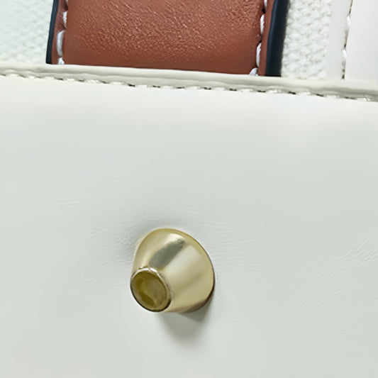 3.高級な金具とレザーのアクセントで、質感と見た目が一段と上品に。しっかりとした素材で丈夫さも抜群です。底面には4つの合金点が付いており、汚れや摩耗に強く、品質の良さを演出します。