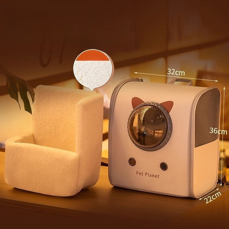 ペット用 キャットバッグ リュックサック 外出用 ランドセル キャットケージ ペットバックパック スペースカプセル ストレス軽減 通気性が良い 携帯便利 大容量 折りたたみできる おしゃれな グレー CWB-N011