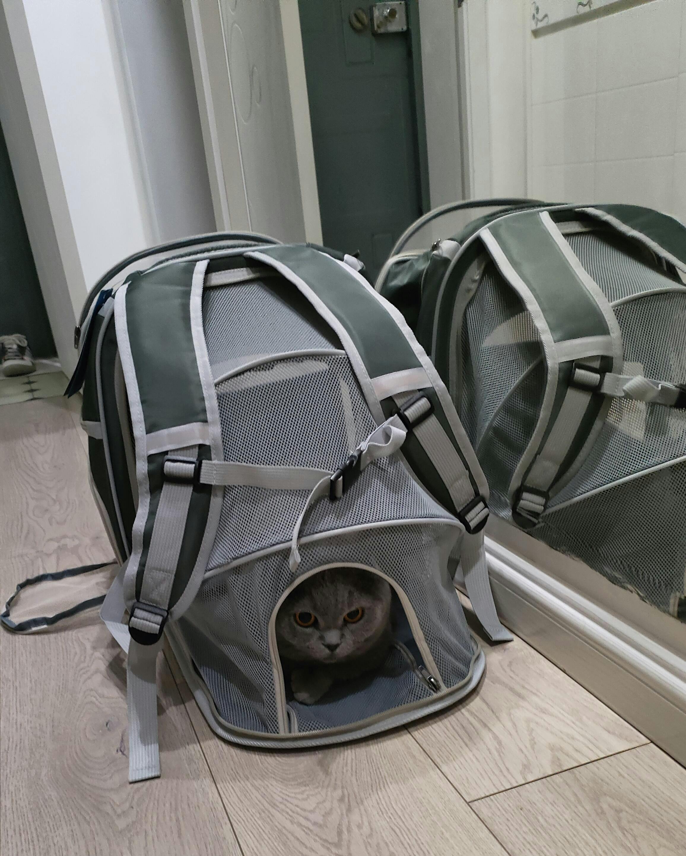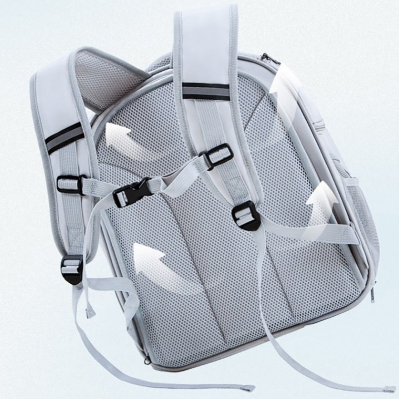3. 夜間反射テープで安全性を向上し、正面収納ポケットでペット用品を簡単に収納。軽減肩ベルト設計で長時間背負っても疲れにくいです。