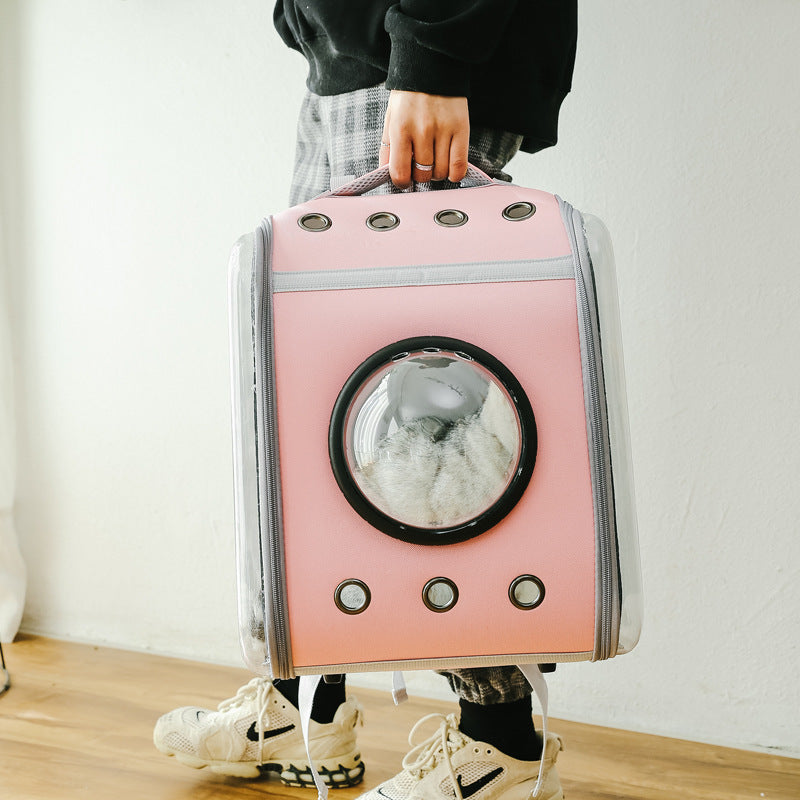 猫・犬用バッグ キャットバッグ リュックサック 四季に適した スペースカプセル ペット用 お出かけバッグ 外出用 保温 透明 通気性 折りたたみ可能 携帯便利 おしゃれな グレー CWB-N010